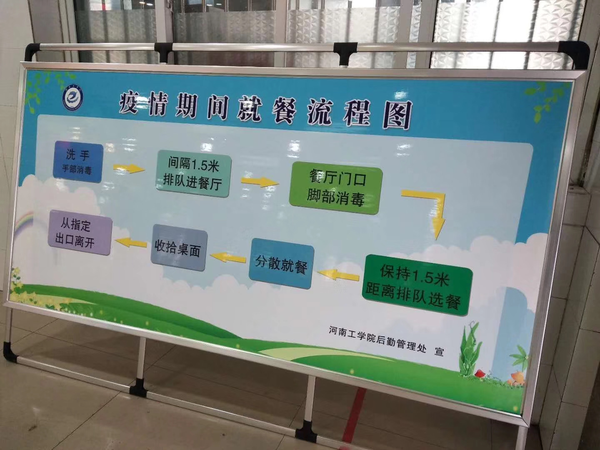 43.在就餐場所廣泛張貼疫情防控宣傳指南、就餐須知,引導師生掌握衛(wèi)生的就餐方式。